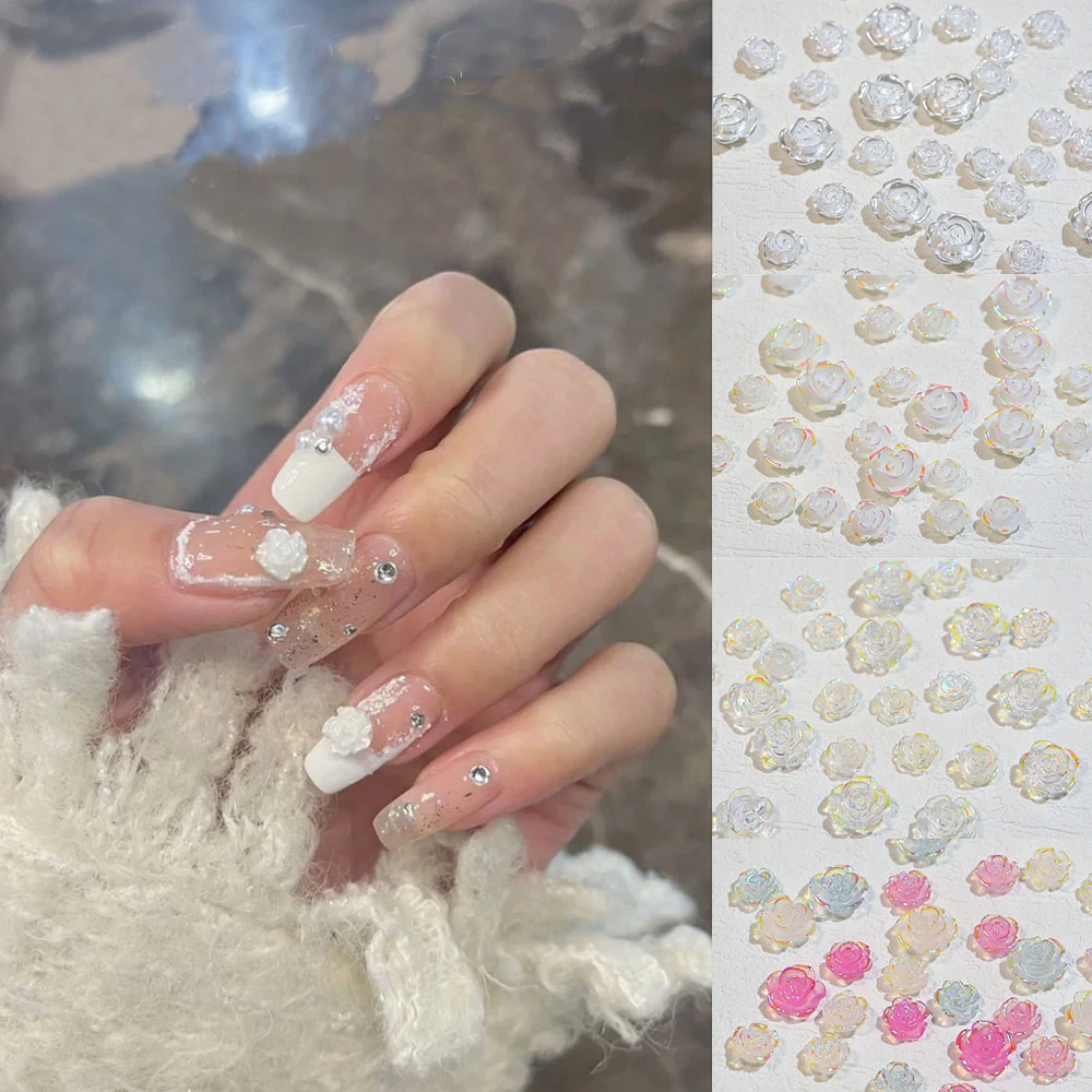 30pcs Bag 3d Acrylic Camellia Nail Art Charms Pearl White Aurora Clear Ab Color Changing 5 8 7 5mm Mixed Flower Nail Decoration Aliexpress